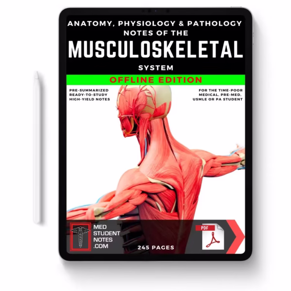 What’s included: Ready-To-Study Anatomy, Physiology, Pathophysiology, and Pathology Notes of the Musculoskeletal System.