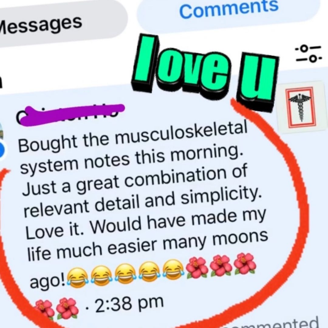 Bought the musculoskeletal system notes this morning. Just a great combination of relevant detail and simplicity. Love it. Would have made my life much easier many moons ago! 😂😂😂😂😂😂🌺🌺🌺🌺🌺